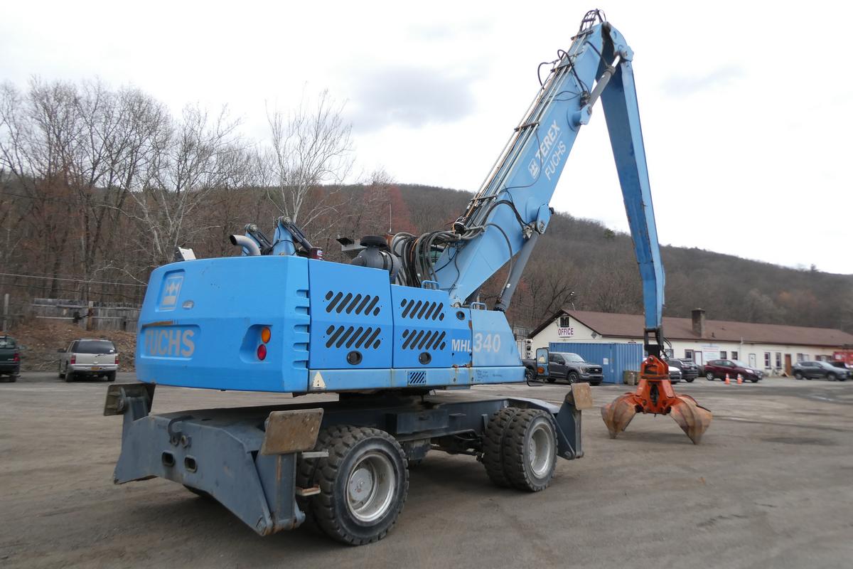 Inventory # 0330262Year: 2012 Make: Terex Fuchs Model: MHL340D Serial # 340210/2174 Type: Wheeled Material Handler Motor: Deutz TCD 2012 L06 2V 6.0L Diesel Elec 172 HP Air To Air: Yes Air Conditioning: Yes (Not Working) Transmission: Hydrostatic Tires: 10.00-20 Rims: 10 Bolt Hour Reading: 5,989 (3/30/26) Length w/o boom: 17'2" Shipping Length: 40'8" Width: 9'9" Height: 11'10" Book Weight: 63,934 lb Boom Details: 45' Reach - Main Boom: 23'7" - Stick: 20'4" Added Details: Runs And Works Well, All Cylinders Dry, 4 Tooth Kinshofer Grapple w/ Rotator, Generator For Magnet, Four Hydraulic Outriggers, Hydraulic Adjustable Cab Height, Backup Camera, Spec Sheet, Machine Card Price: $99,900 1YDXXTHIIJJXTRTQPLKDPEEABEXRT+750+4800+3188+210 Print This Page | Back to Recycling Equipment Inventory | Ask A Question Terms of Sale