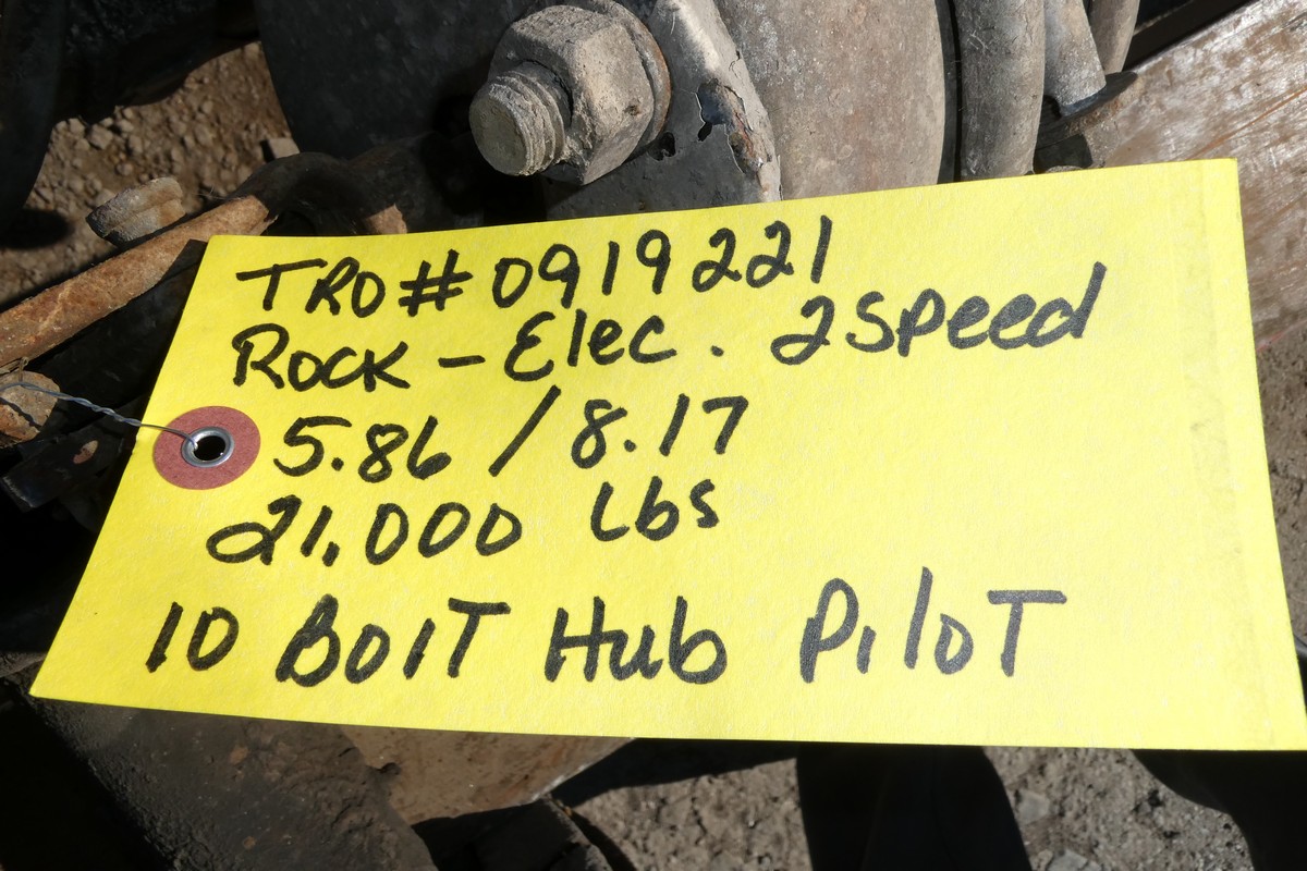 Inventory # 0919221RRemoved From: 1993 Ford Cargo 7000 - 26,787 mi / 5,774 hrs Make: Rockwell Model: Elec 2 Speed Ratio: 5.86 / 8.17 GAWR: 21,000 lb Details: 10 Bolt Hub Pilot Price: $850 Hill Terms of Sale