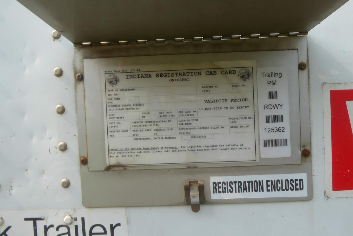 Inventory # 0523249Year: 2004 Make: Wabash Model: DVDBHPC Axles: Fixed Single Type: Dry Box Trailer VIN: 1JJV281W44L870721 Suspension: 2 Spring Tires: 275/80R22.5 / 295/75R22.5 Rims: 10 Bolt Hub Pilot - Steel Length: 28' Width: 102" Height: 13'4" Weight (Estimated): 8,920 lb GVW: 40,000 lb Floor Composition: Wood / Steel / Aluminum Trailer Composition: Aluminum / Steel Door Type: Roll Up - Steel Surround (Not Working) Door Opening Width: 7'9" Door Opening Height: 8'7" Added Details: Air Brakes, Can Pull Doubles, Aluminum Roof, Side Windows, Vertical Logistics, Some Aluminum Crossmembers Price: $1,750 as is as described 209DCXXTAEJJXXTQRTVDPEDJXRT+750+300 Terms of Sale