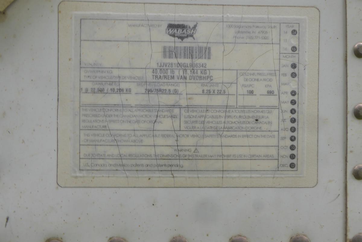 Inventory # 0530245Year: 2016 Make: Wabash Model: DVDBHPC Axles: Fixed single Type: Dry box trailer VIN: 1JJV281D9GL906342 Suspension: 2 Spring Tires: 295/75R22.5 Rims: 10 Bolt Hub Pilot - Steel Length: 28' Width: 102" Height: 13'4" Weight (Estimated): 8,940 lb GVW: 40,000 lb Floor Composition: Wood / Steel Trailer Composition: Steel / Aluminum Door Type: Roll Up - Galvanized Surround Door Opening Width: 7'8" Door Opening Height: 8'9" Added Details: Air Brakes, Side Windows, Can Pull Doubles, Aluminum Roof, Side Skirts, Vertical Logistics Price: $3,500 209DCXXTBEJJXXTRQPLKDPGAEXRT+750+300 Terms of Sale