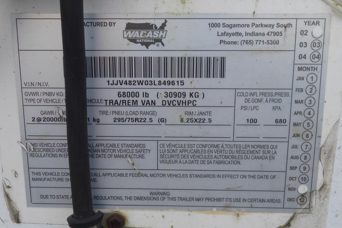 2003 Wabash DVCVHPC 48' Tandem Axle Dry Box Trailer