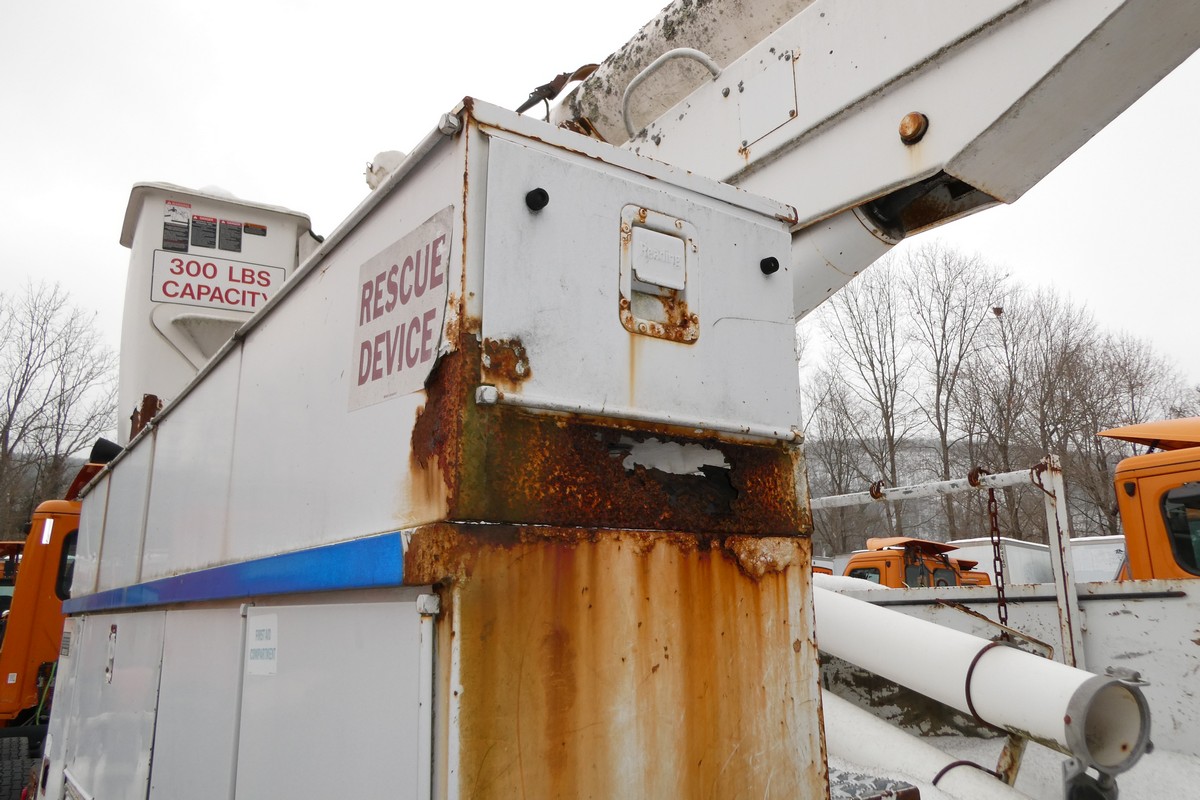 Inventory # 0508141Year: 2002 Make: Freightliner Model: FL-70 Type: AWD Single Axle Bucket Truck VIN: 1FVDBTAKX2HJ90654 Motor: CAT 3126 elec 230 hp - engine SN: CKM35195 Air to Air: Yes Engine Brake: No Transmission: Spicer ES066-7B 7 speed Wetline: hydraulic for bucket assembly PTO: Air operated passenger side with married hydraulic pump Rear: Rockwell DTC 21,000 lbs Ratio: 5.86 Power Divider: No Suspension: Spring 21,000 lbs Tires: 11R22.5 Rims: 10 bolt hub pilot - steel Length: 30' Width: 8' Height: 12'6" Odometer Reading: 127,081 ECM: 127,081 Hour Meter Reading: ECM Hour Reading: 4,359 Wheelbase: 188" Cab to Axle: 122" Cab to End: 196" Weight: 27,420 lbs GVW: 33,000 lbs Boom Details: Altec AN652 boom/bucket setup, works (boom only operable from bottom, not from basket, basket cracked) with no leaks, 52' platform height, 1000 lb rope winch on end of boom, Bucket Details: SN 0202-U2770, 350 lb capacity Added Details: Runs well, single frame, all wheel drive, power steering, Reading steel utility body (back compartments floors have rusted away) Price: 3RVTXXTBGIJJXXTXXQLDPBDBBERRQTSSX+450+1400+150 Arthur Trovei & Sons, Inc. does not warrant, guarantee or represent that the bucket equipment has been fully certified to be a safe to use, functioning unit. Furthermore, Arthur Trovei & Sons, Inc. will not be held liable for any damages or injuries done by use of the truck and/or bucket equipment. Print This Page | Back to Boom Truck Inventory | Ask A Question Terms of Sale
