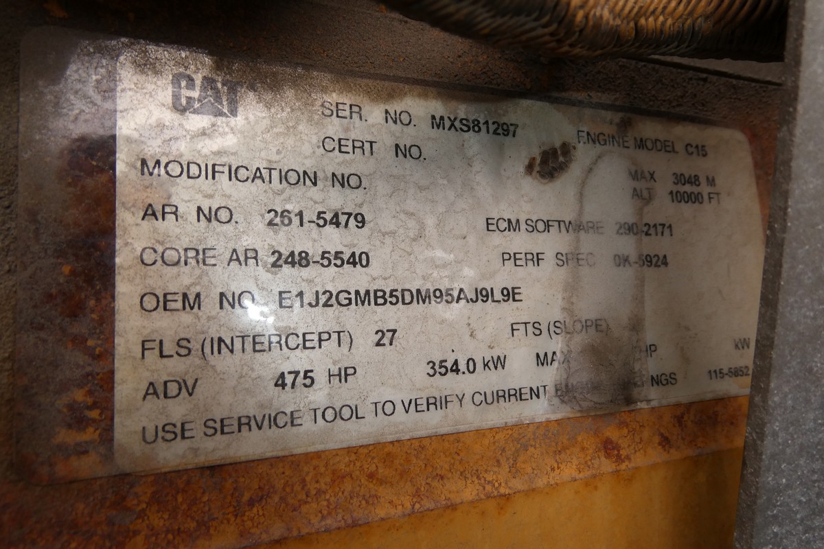 Inventory # 0612251Year: 2007 Make: Peterbilt Model: 387 Type: Tandem Axle Sleeper Cab Tractor VIN: 1XP7DB9X97D654169 Motor: Cat C15 Twin Turbo Elec 475 HP Air to Air: Yes Air Conditioning: Yes (Works) Engine Brake: Electronic Wetline: No Transmission: Fuller FRO16210C 10 speed PTO: No Front Axle: 12,000 lb Rear: Eaton DSP40 40,000 lb Ratio: 3.36 Power Divider: Yes Suspension: Peterbilt 4 air bag 36,000 lb Tires: 275/80R22.5 / 295/75R22.5 Rims: 10 Bolt Hub Pilot - Aluminum Odometer Reading: 697,006 ECM: Hour Meter Reading: 16,529 Computer Hour Reading: Length: 29' Width: 8' Height: 12'5" Wheelbase: 240" Cab to Axle: 100" Cab to End: 142" Weight: 18,400 lb GVW: 52,000 lb Sleeper Details: Air Ride 67" High Roof Double Bunk Sleeper Added Details: Runs Well, Single Frame, Air Slide 5th Wheel Price: $19,900 NNY 3RVXXTAGIJJXRTQPLKDPAADJGXRT+750+900+300 Terms of Sale